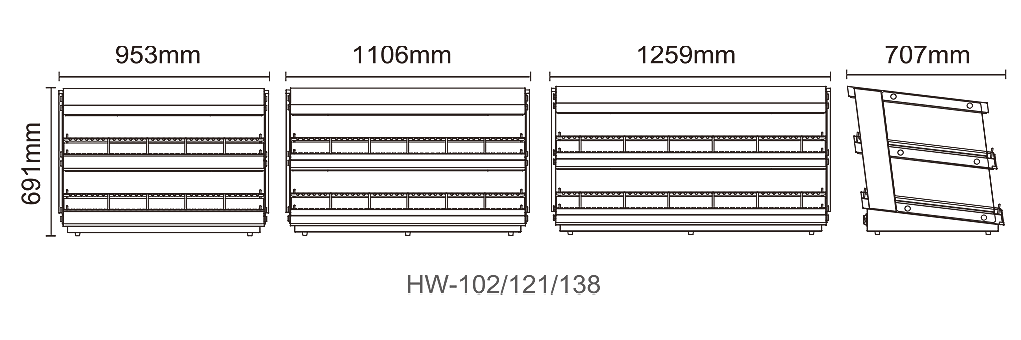 | HW-65 | HW-85 | HW-102 | HW-121 | HW-138 | HW-152 | |